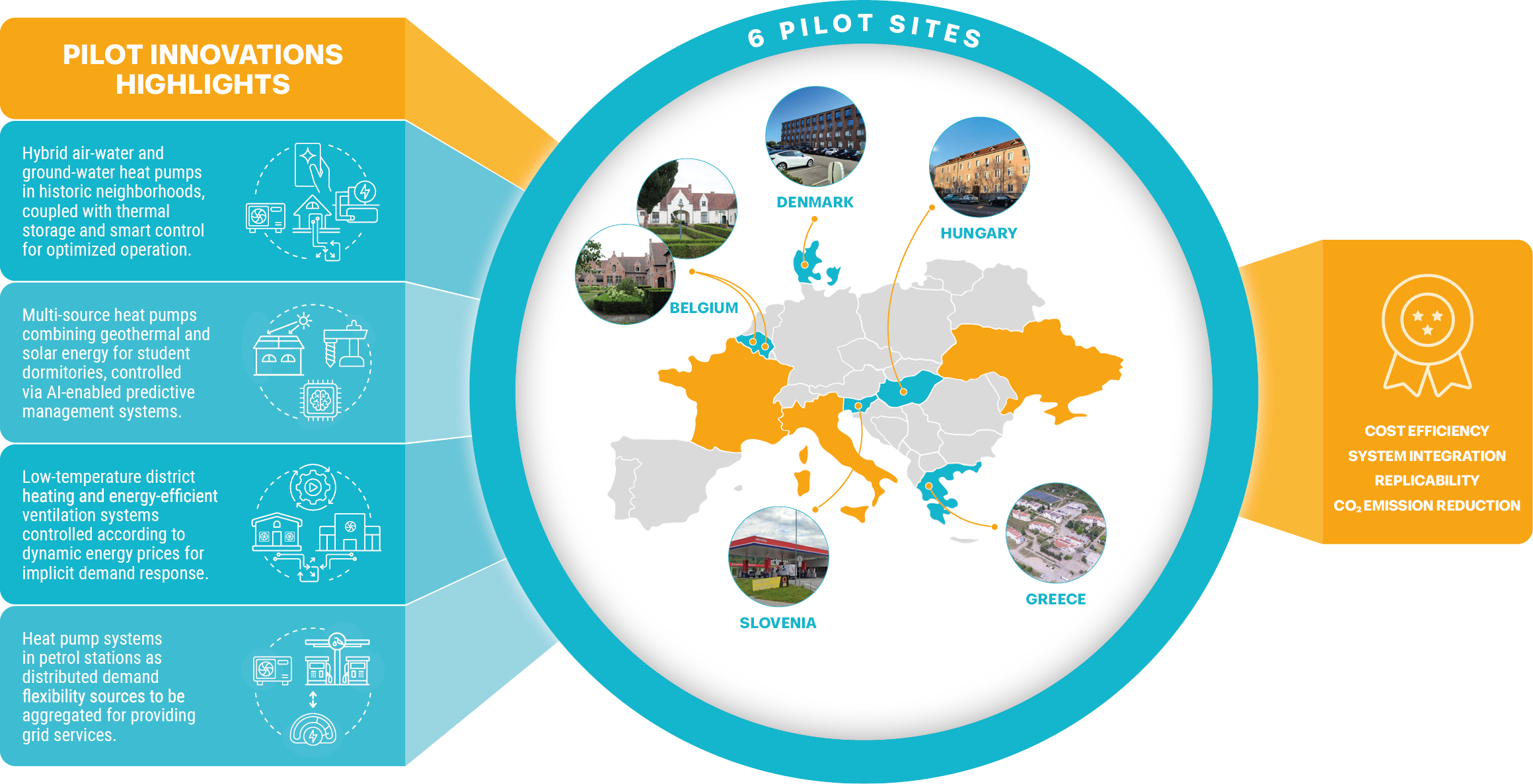 - Demonstrates advanced electrified heating and cooling systems in 6 pilot sites and one follower site across Europe